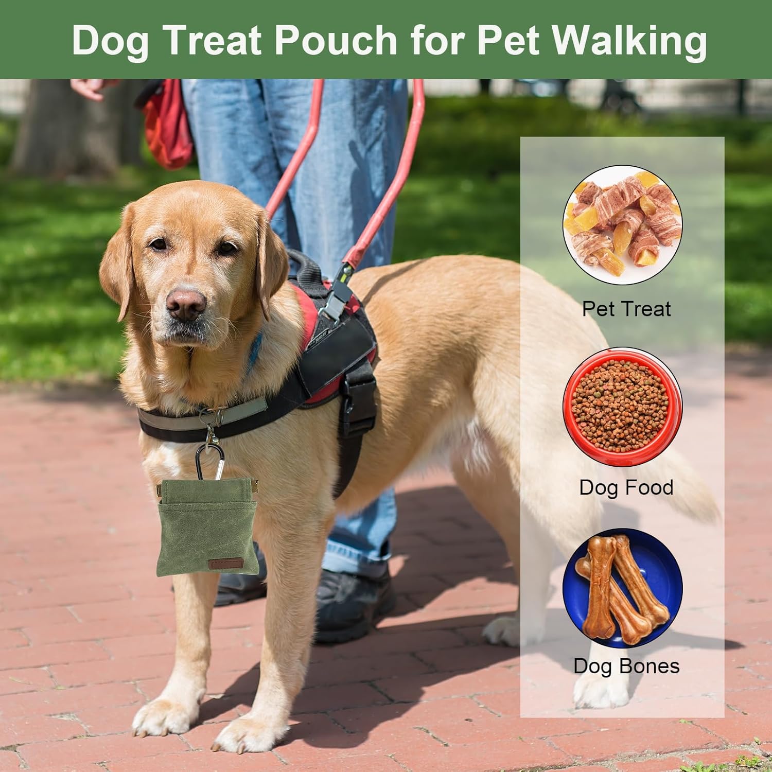 【Premium Material】Our dog treat bag is made of high-quality canvas, which is durable, stain-resistant, easy to clean, and pet-safe. It keeps dog treats dry and protected.