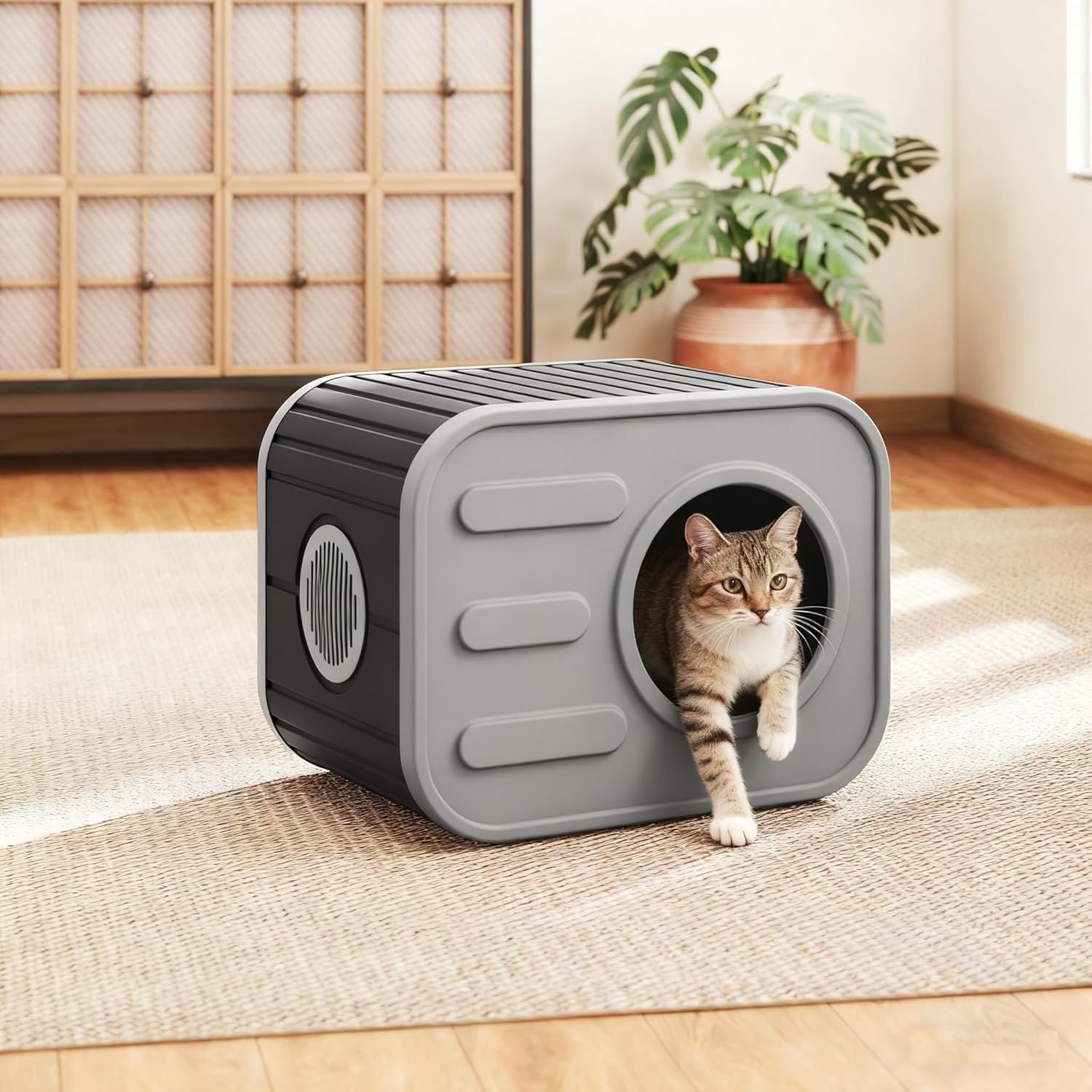 Hassle-Free Setup-The cat house comes with hassle-free setupincluding all parts & clear assembly instructions.Its smooth resin surface wipes clean easilyfor low-maintenance freshness & odor control.