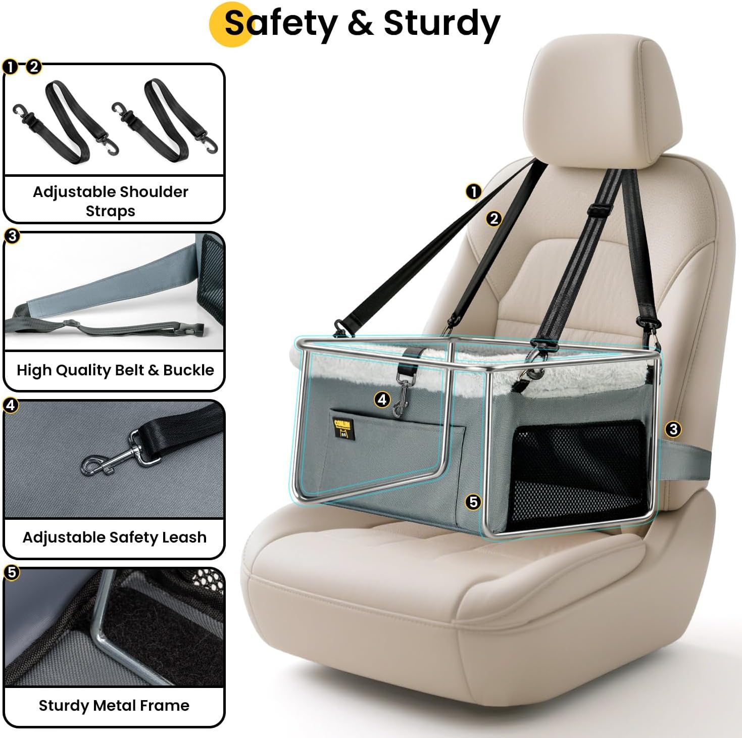 8 reviews for Dog Car Seat Booster for Small Pet Under 20lbs, Portable Travel Puppy Car Seat with Internal Steel Frame, Comfort Cushion & Storage Pockets, Adjustable Straps Fit Most Cars, Grey