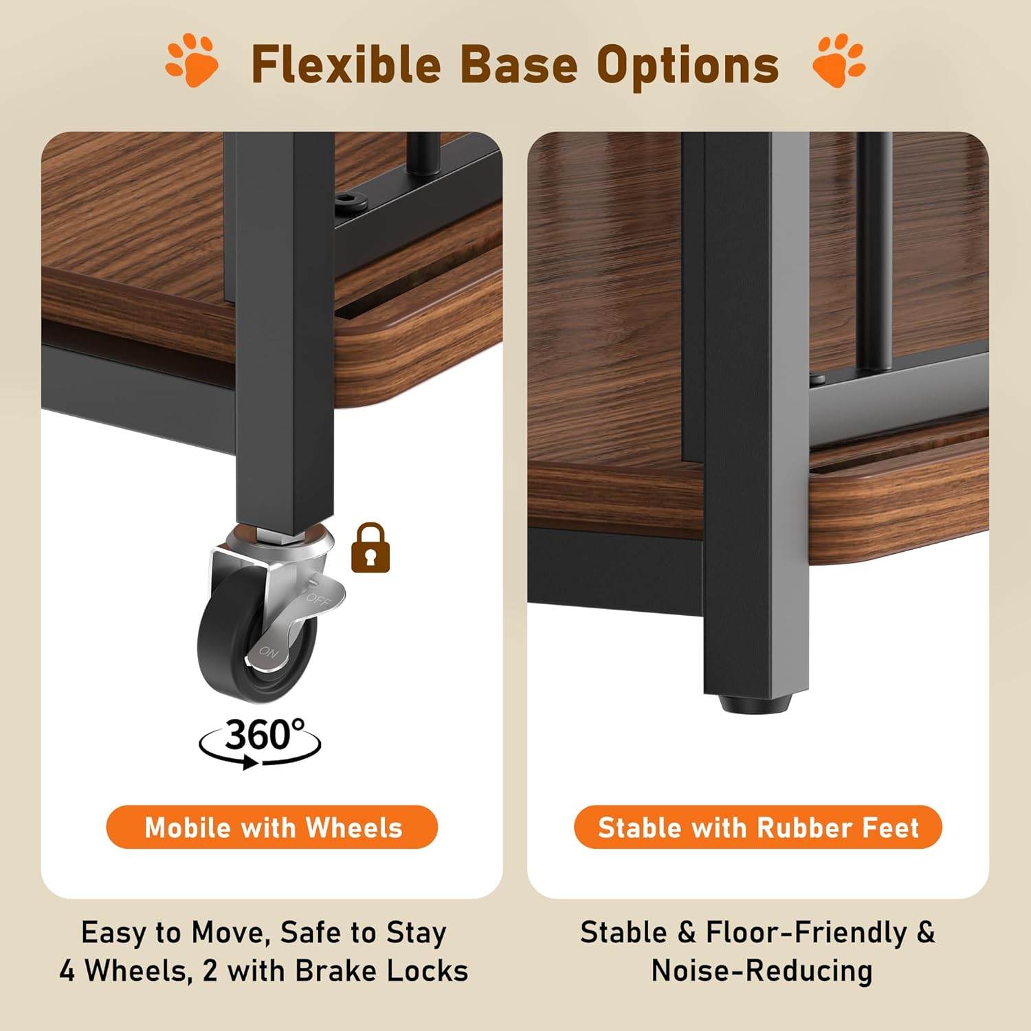 Wheels & Rubber Feet for Flexible Use: Includes 4 smooth-rolling swivel wheels (2 with locking brakes) for effortless mobility, plus optional rubber feet for fixed placement. Choose wheels when you need to move your dog crate furniture, or rubber feet for anti-slip stability, noise reduction, and scratch-free floor protection