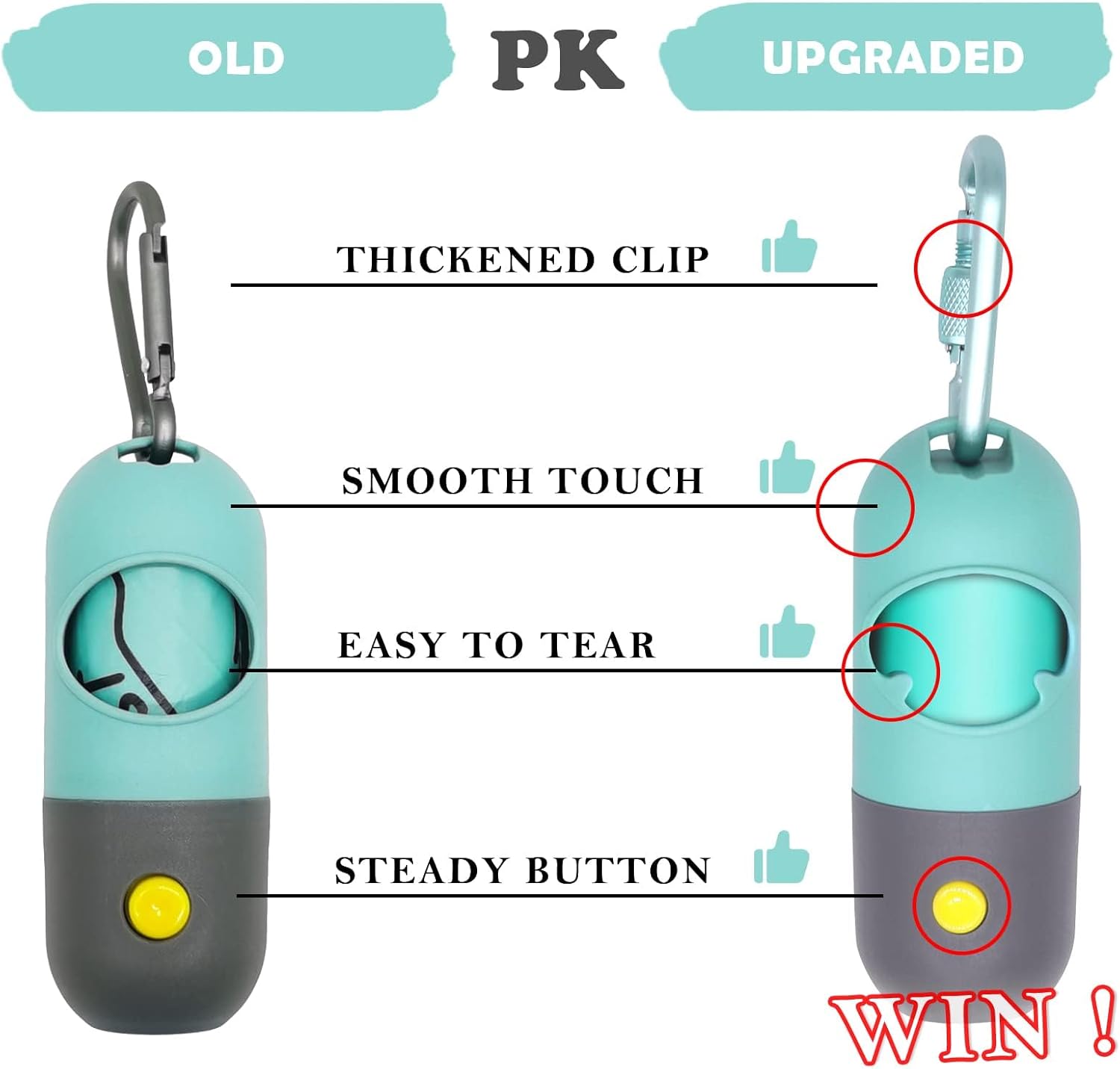 Truly Hands-Free Convenience- Tired of juggling leash and bags? Hook-and-loop fastener securely attach the dispenser to leashes up to 1.5″ wide. The 360° rotating base keeps bags accessible from any angle while maintaining flashlight direction control.
