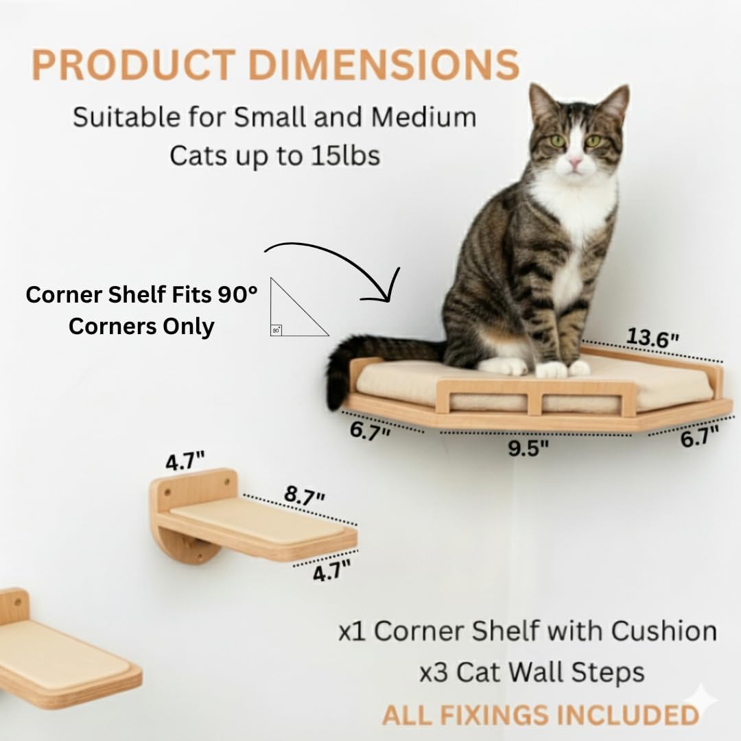 Cozy & Washable Cushion: The cat wall shelf comes with a soft, machine-washable cushion, ensuring a cozy resting spot for your cat. Made from premium birch, this cat shelf is designed for comfort and durability, making it an ideal addition to your cat wall climbing system.