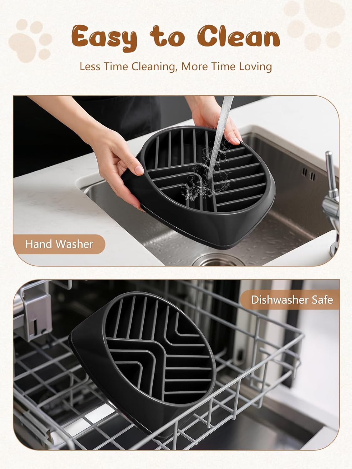 Easy to Clean and Maintain: Cleaning your dog slow feeder bowl is a breeze! Its smooth surface prevents food from getting stuck, and it’s dishwasher-safe for easy cleaning. Whether your dog enjoys dry, wet, or raw food, this slow feeder dog bowl is easy to maintain.
