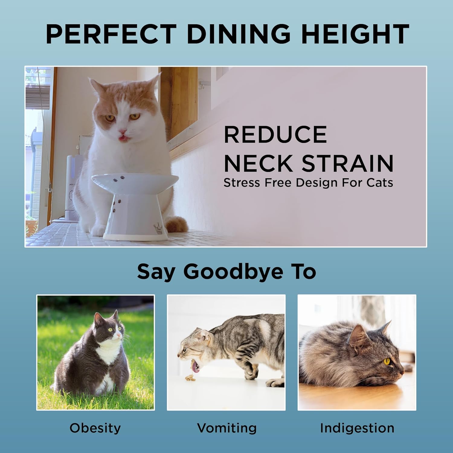 【Versatile Use】 Ideal for flat-faced pet, senior cats, messy eaters, and big kittens; solves whisker fatigue, vomiting, obesity, aids digestion, neck straining, and feeding discomfort with elevated ergonomic design making it a perfect kitten food bowl option
