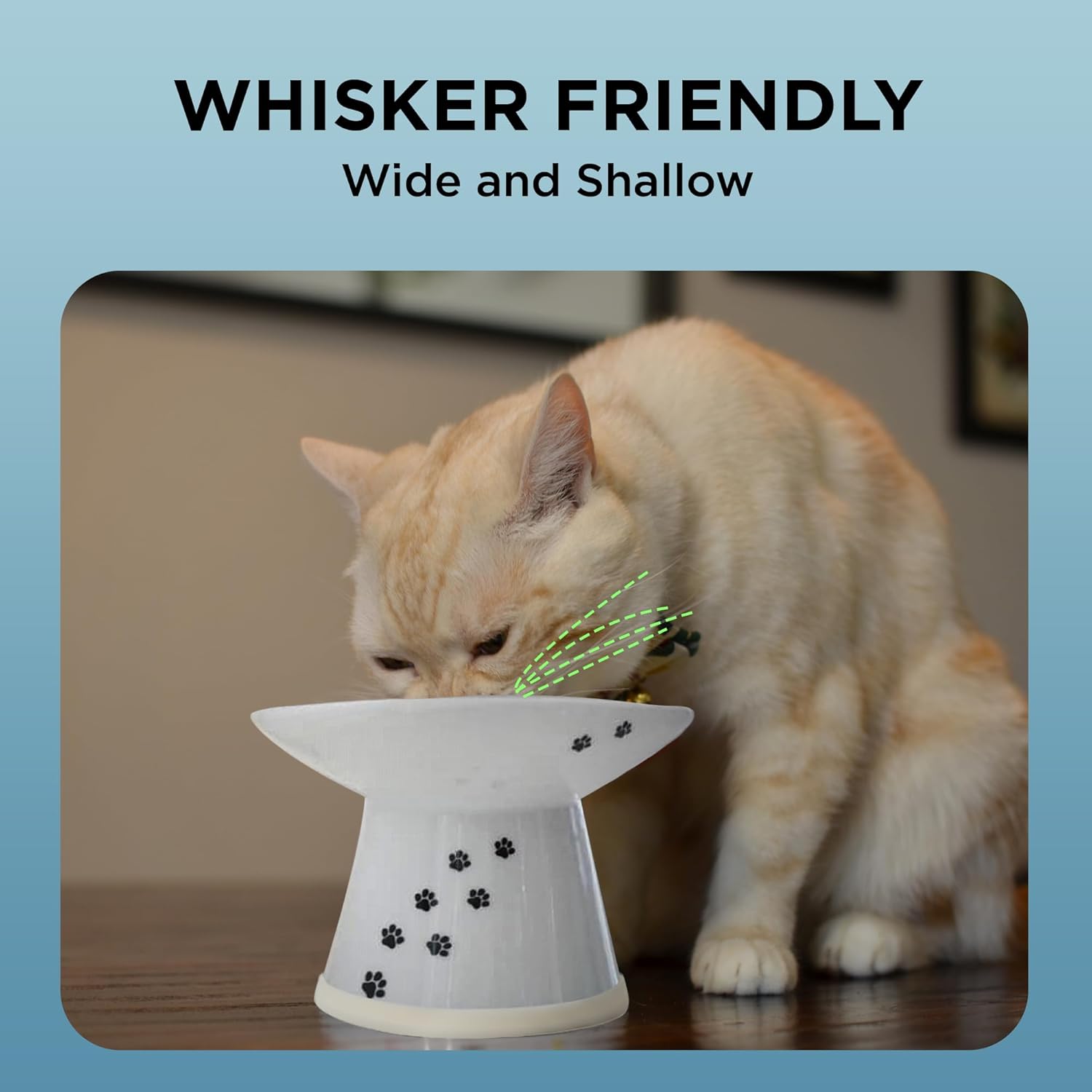 【Design & Comfort】 This extra wide elevated cat food bowl helps reduce whisker fatigue and strain on your cat’s neck; ideal for flat-faced breeds and messy eaters, serving as whisker fatigue cat bowl which keeps food centered.