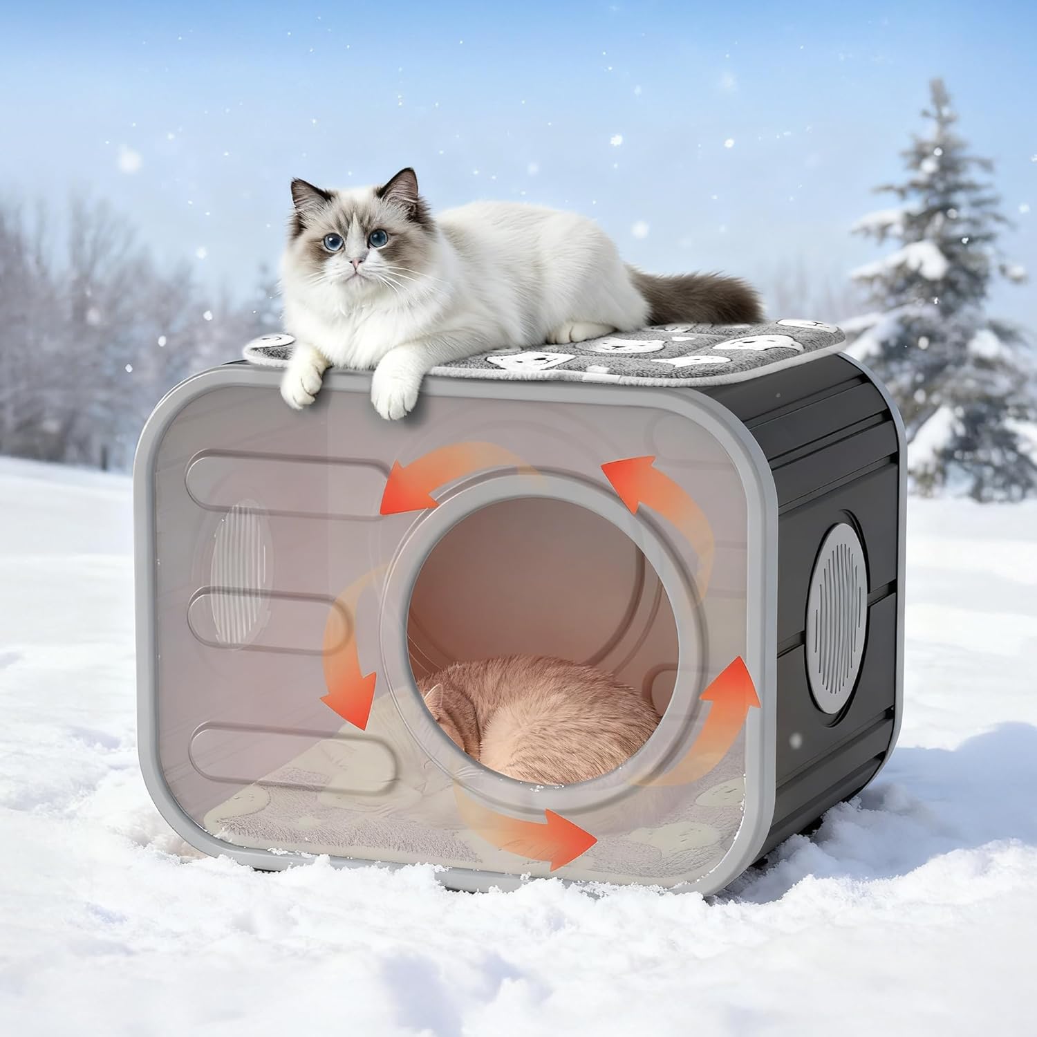 🐈【Weatherproof Curved Roof & Included Soft Mat】Designed as an outdoor cat house and cat houses for outdoor cats, this cat house features a curved roof that effectively channels rainwater, ensuring reliable waterproofing to stand up to outdoor conditions. As an outside cat house weatherproof, it maintains structural stability, making it a practical option for cat houses for indoor cats and outdoor use alike. The included soft, pet-friendly mat fits perfectly with the interior space, adding extra warmth and comfort for cats to rest on, especially in cooler weather.