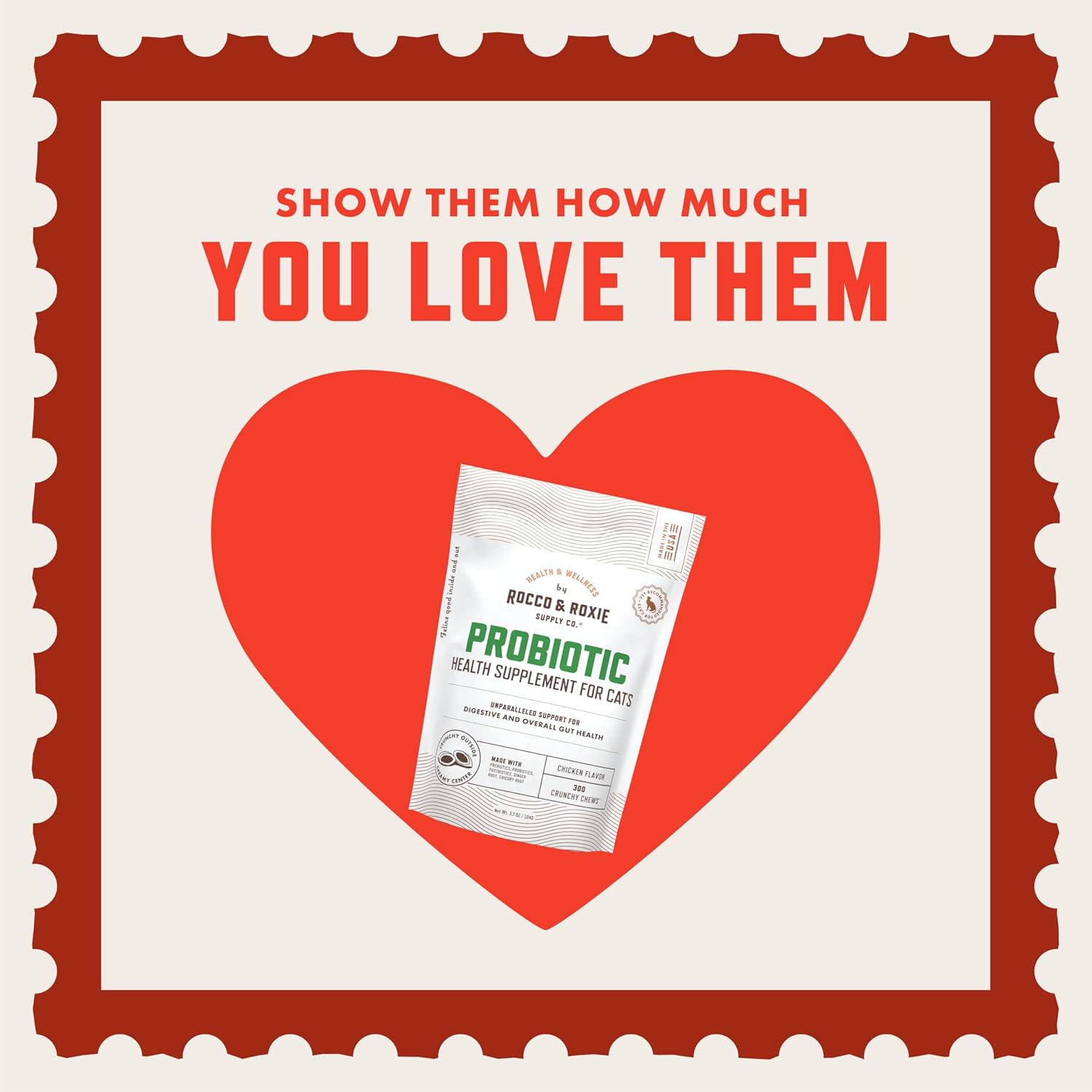 Unparalleled Support: Our chicken-flavored crunchy chews provide probiotics for cats, support of their digestive system and overall gut health; with high levels of pre-, pro-, and postbiotics, providing maximum support to your cat’s gut microbiome