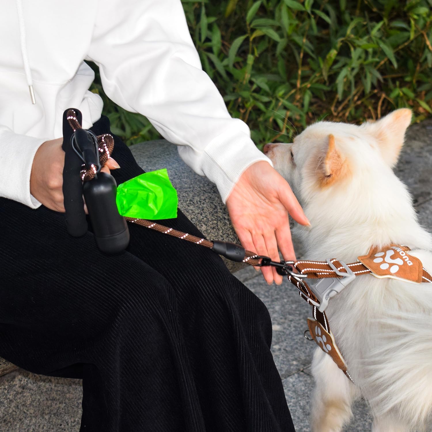 A plastic portable bag holder with leash clip is a bonus for your convenience. It is easy to pull out a poop bag from the roll through the dispenser.