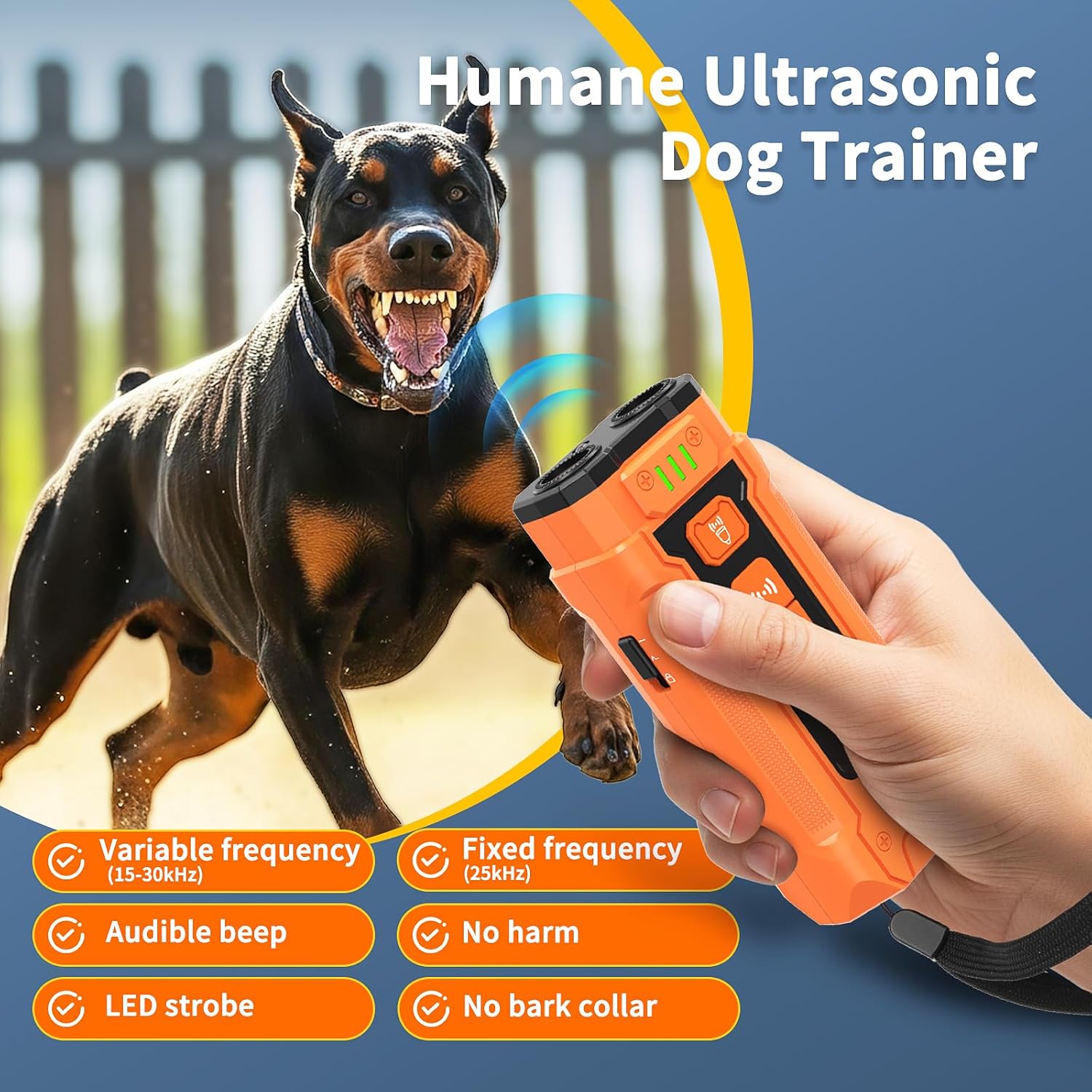 Ultrasonic Dog Bark Deterrent: This dog bark deterrent is an ideal dog barking control devices for addressing excessive barking without harm, sonic bark deterrents is a safe barking stopper convenient for on-the-go walk or training at home.