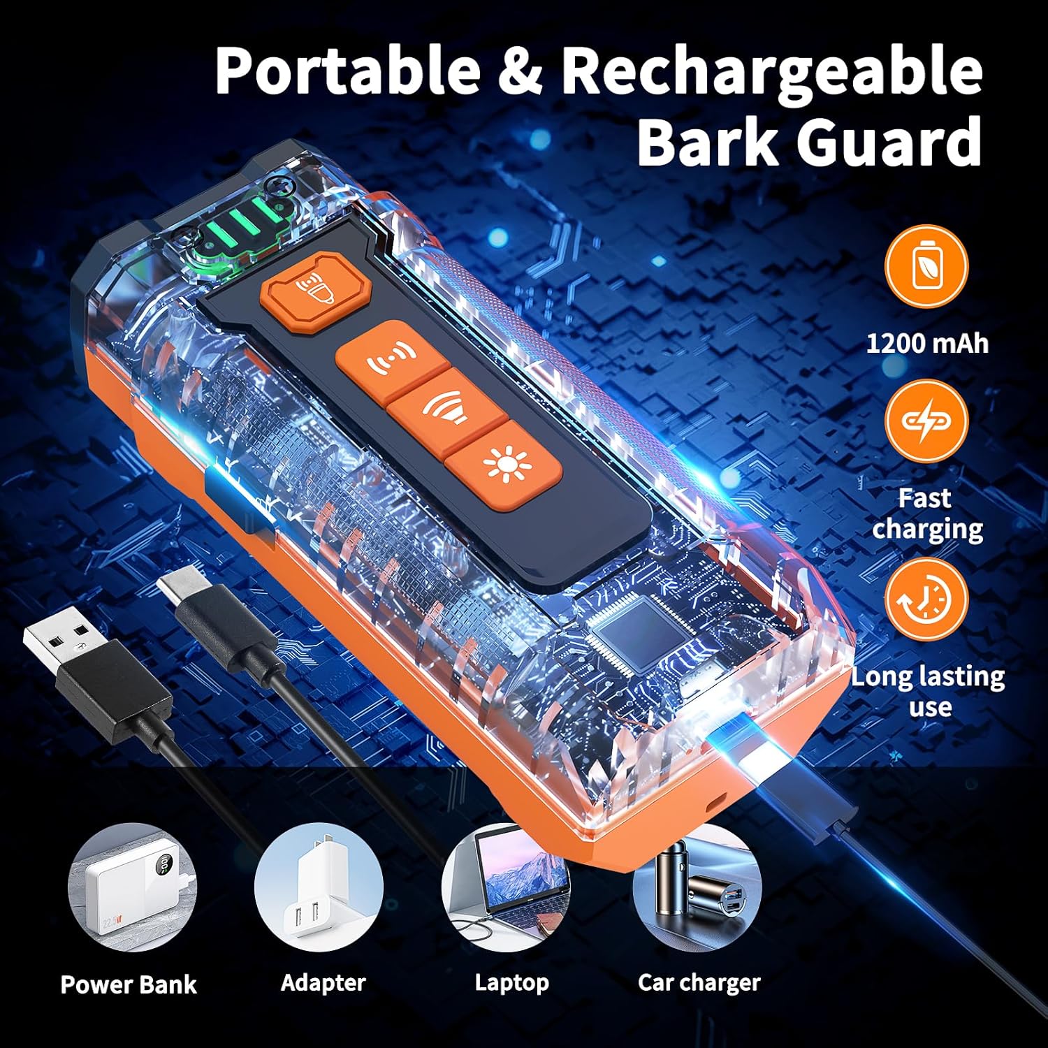 Rechargeable Barking Stopper: Dog training device includes a rapidly flashlight serves as a deterrent for aggressive dogs, fast charging & long lasting LED light feature is perfect for nighttime training and keeping you safety outdoor walks.