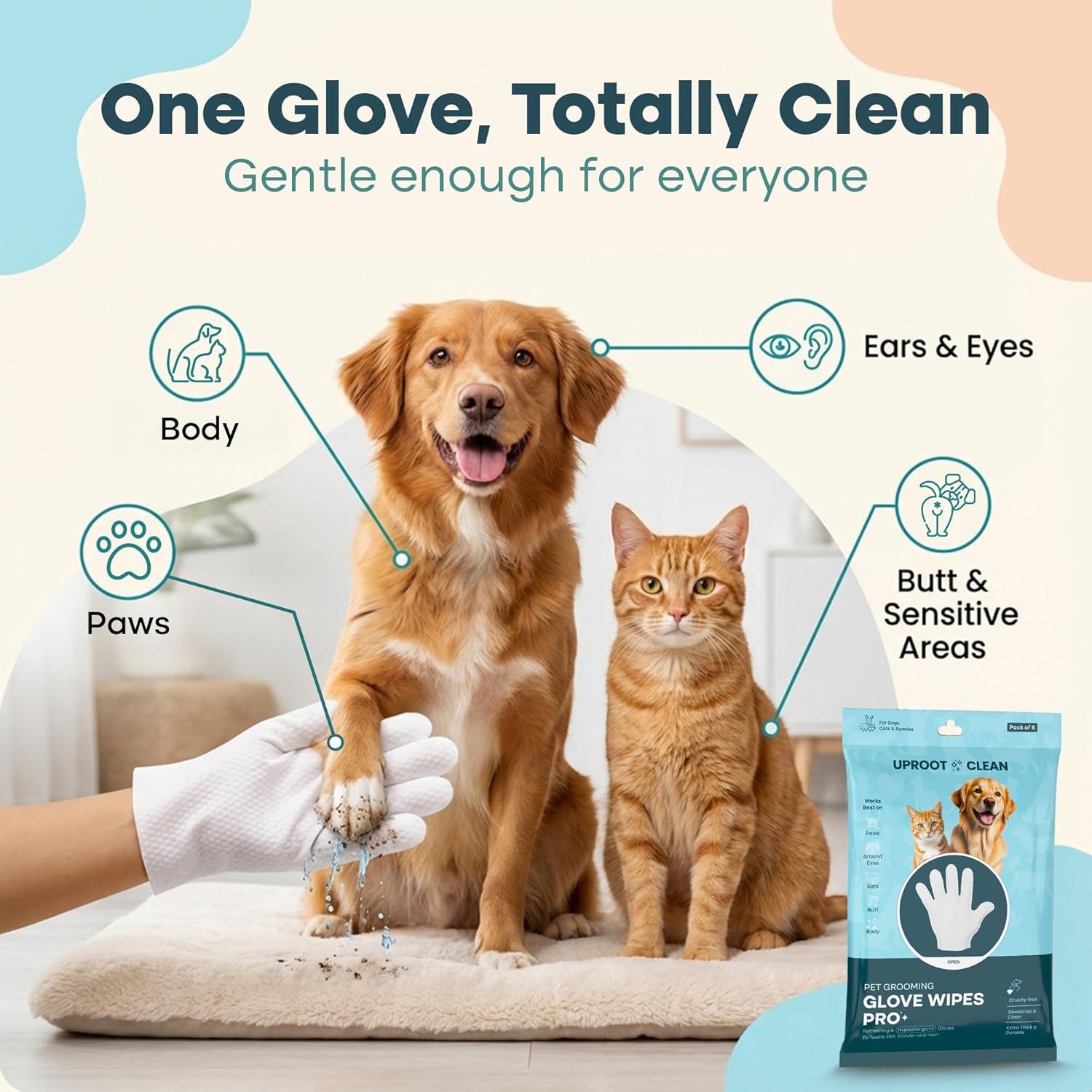 Convenient for Home & Travel: Uproot Clean cat & dog cleaning gloves come sealed in convenient packs of 6, making them lightweight & perfect for use during adventures, trips, or everyday at home!