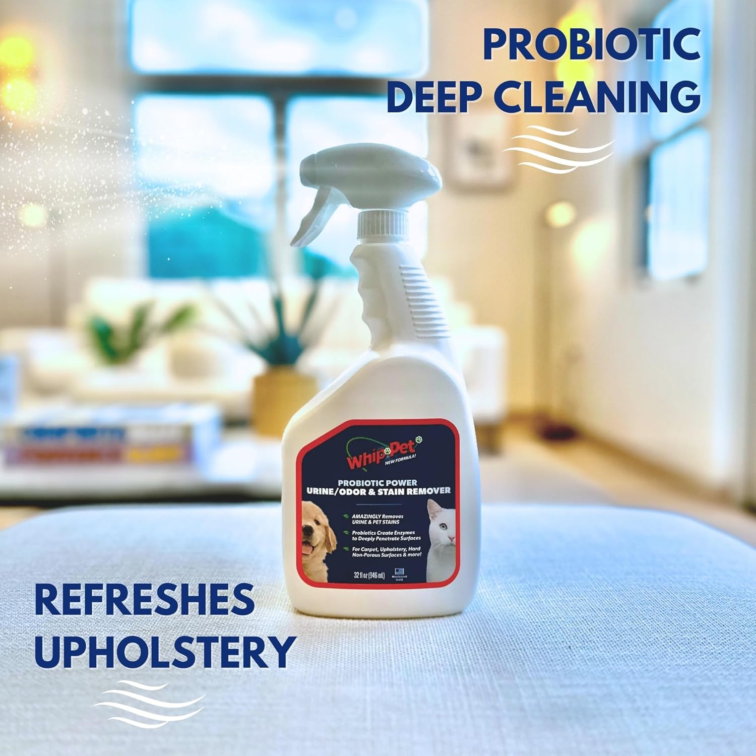 VERSATILE: Whip-Pet eliminates stains and odors from severe urine, diarrhea, vomit, feces, blood, mud, grease and many more! This unique formula also helps prevent pets’ attraction to repeat marking.