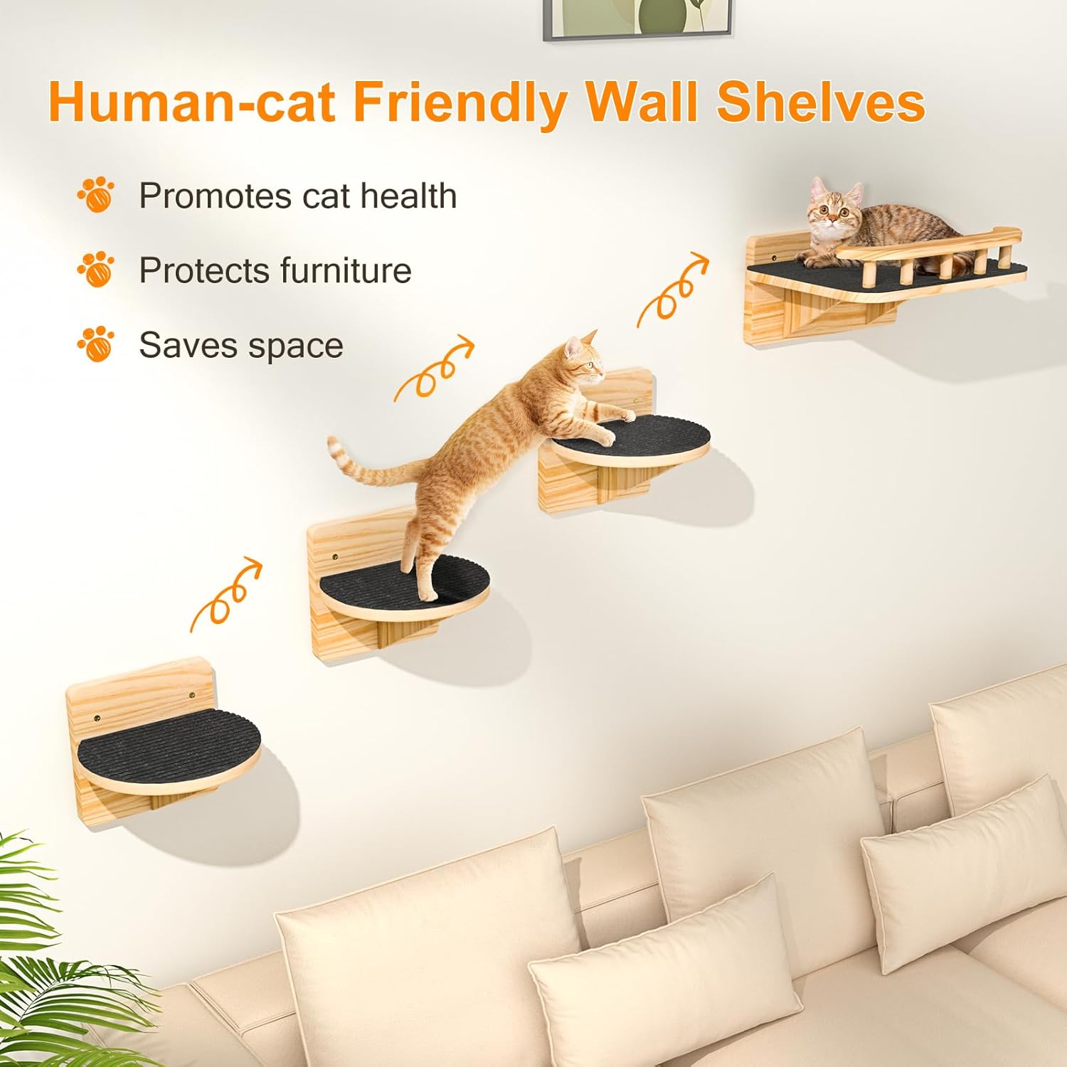 Promotes Long-Term Health & Reduces Destructive Behaviors: This wall system does more than entertain—it’s a health essential. By encouraging natural climbing and perching instincts, it promotes physical activity for weight management and joint health while providing a dedicated scratching outlet. This effectively redirects your cat’s attention away from your furniture, saving your belongings and reducing stress for a happier coexistence.